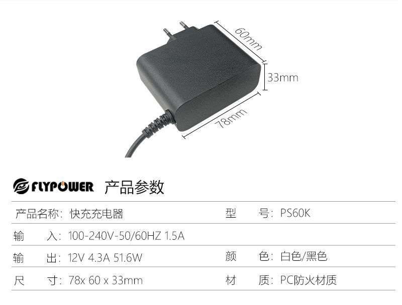输 出:12V4.3A 51.6W Max