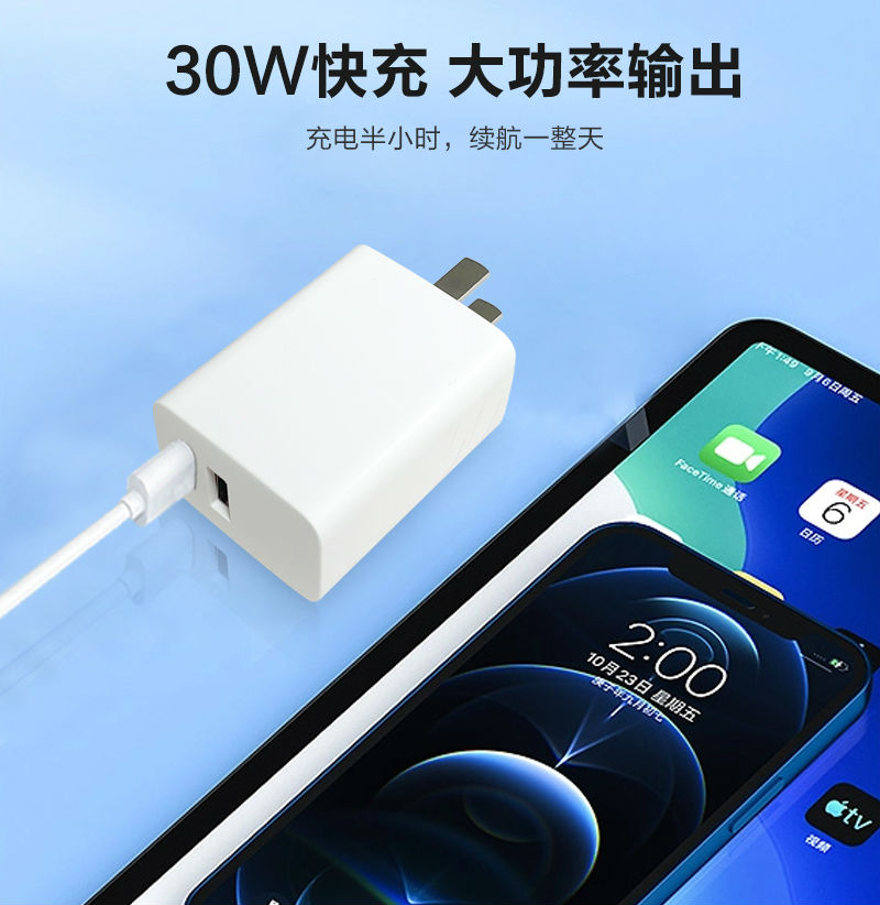 飞天鹰30W快充充电器支持苹果、华为、小米、三星、OPPO、VIVO等各品牌手机和平板