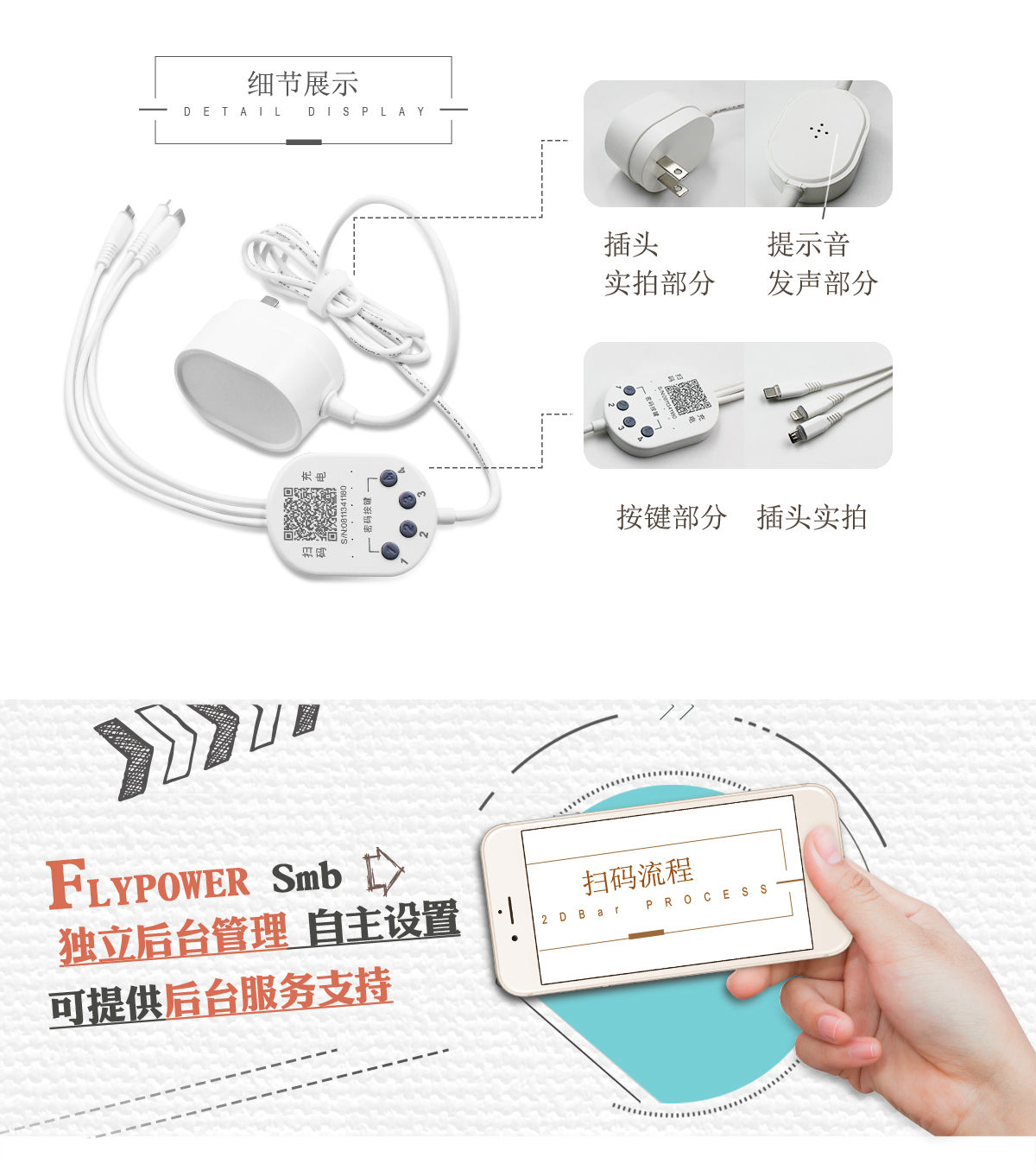 飞天鹰扫码充电器适用于酒店、宾馆、餐厅、医院、网吧、会所等固定场景,可以为使用安卓、苹果、Type-c接口的手机和平板电脑等设备快速充电。