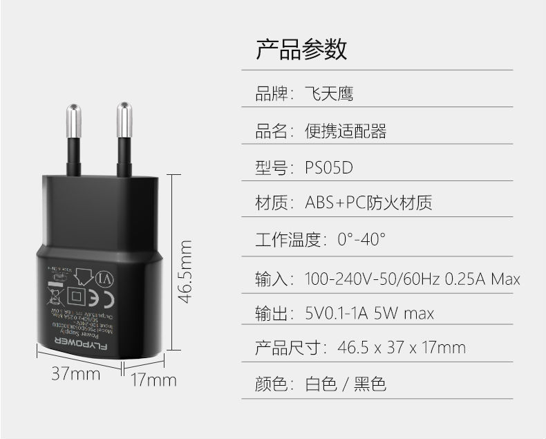 输 入:AC100 - 240V ~,50/60Hz,0.25A Max