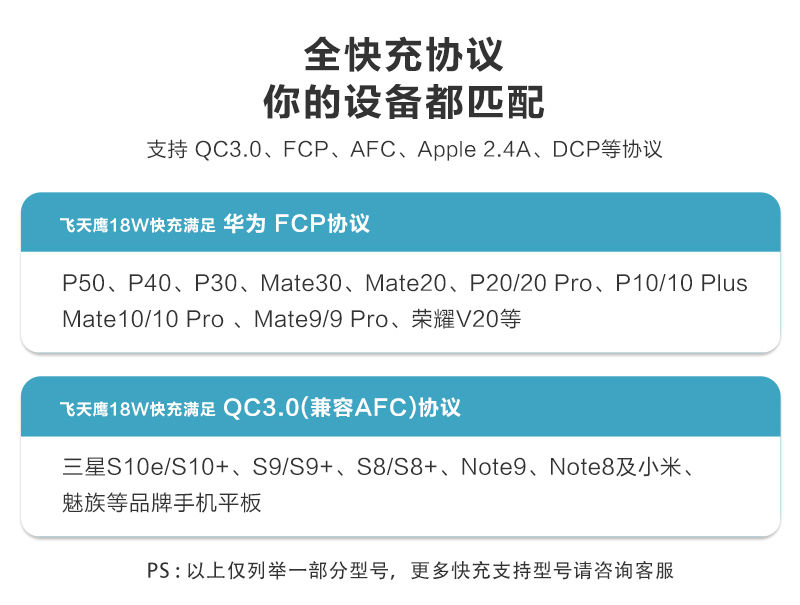 支持协议:QC2.0 QC3.0 QC4.0+ FCP AFC SCP BC1.21 Apple 2.4A等协议