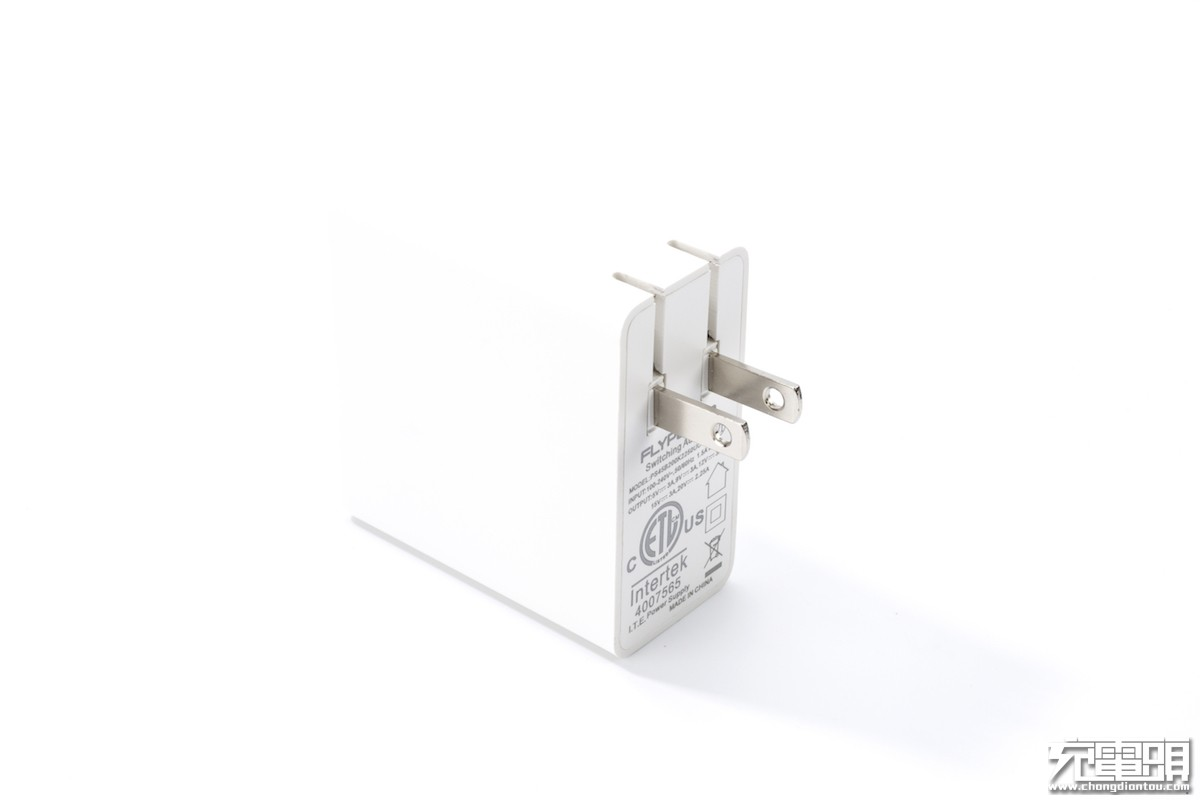 白色外壳,表面磨砂处理,手感细腻。采用线体分离及折叠式插脚的设计,节省空间的同时又方便携带。