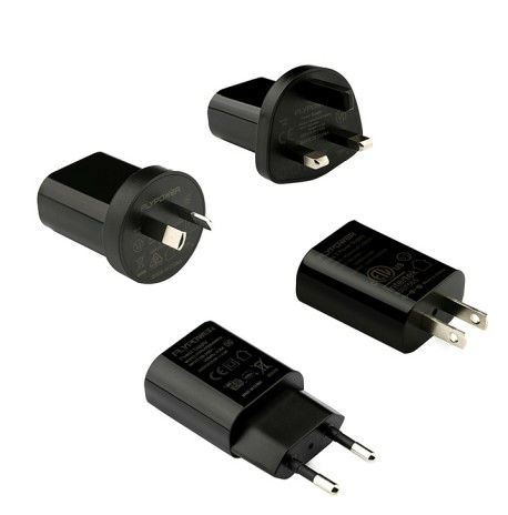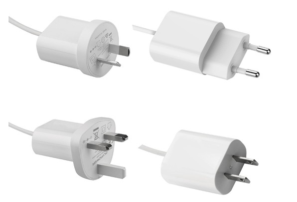 型号为PS06H的飞天鹰家电适配器,最大支持6W功率输出,输出规格为:5.0V1.0A,18V0.33A,12V0.5A,24V0.25A,输入规格为AC100-240V 50/60Hz(最大),覆盖全球电压标准。该产品有黑白两色,分传统带线和现代USB接口家电适配器。