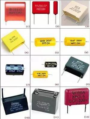 图1是PPN电容;图2是PET电容;图3是MEA电容;图4MPB是电容;图5是PPT 电容;图6是MPT电容;图7是电解电容器;图8是MET电容;图9是MKPH电容;图10、11是电机用电容;图12是MKS电容。