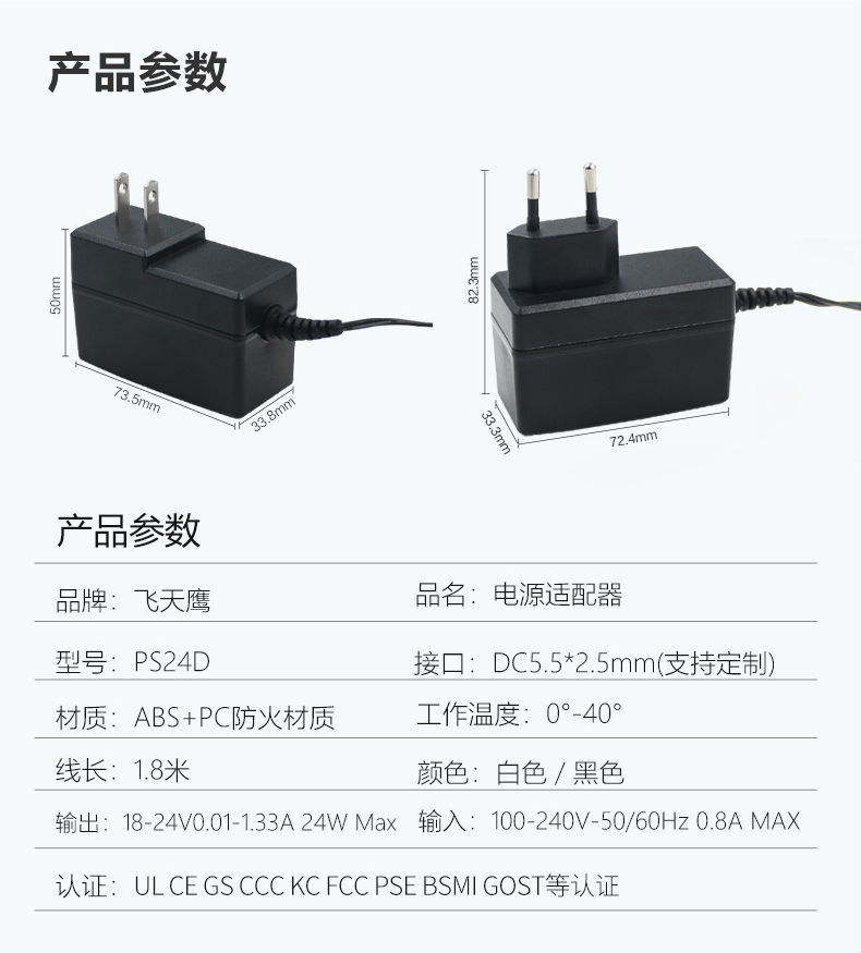 24V1A 18V1.33A电源适配器